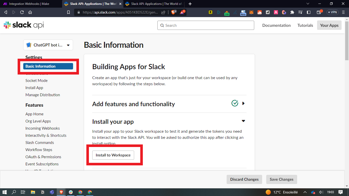 - Ensuite, allez dans "Basic Information", et cliquez sur "Install to Workspace"