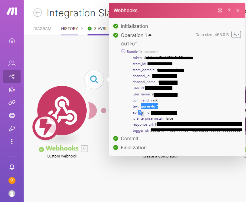 L'étape suivante consiste à créer un bot personnalisé dans Slack pour interroger ChatGPT sur n'importe quel canal de votre Slack d'entreprise. Par exemple, en saisissant la commande suivante : /chatgpt , l'automatisation pourra déclencher l'intervention de ChatGPT dans votre Slack. Il nous restera plus qu'à envoyer les instructions pour recevoir les infos souhaitées !