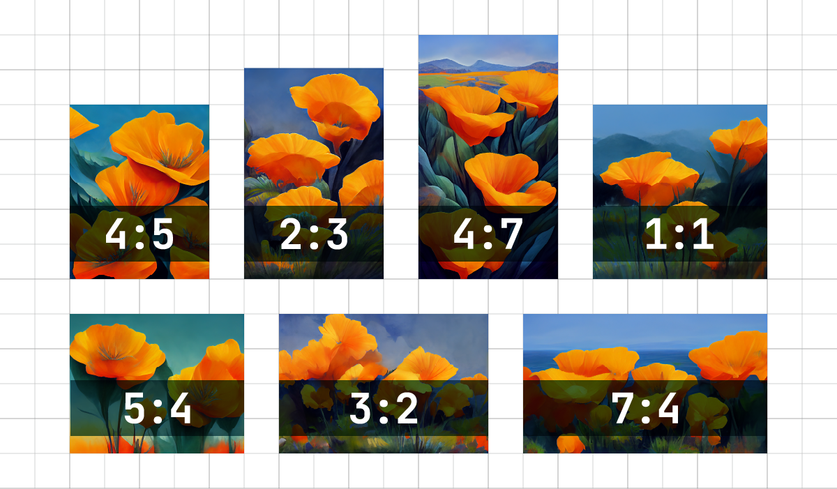 L’instruction « –ar » sert à demander un ratio d’image particulier, par exemple « –ar 3:2 » génère un rendu avec les dimensions d’une photographie classique. Voici les dimensions disponibles : 1:1, 4:7, 2:3, 4:5, 5:4 et 7:4.