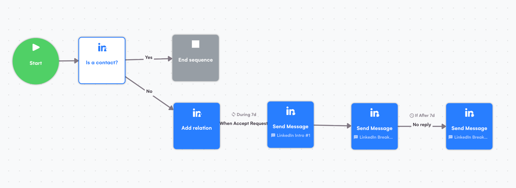 - Demande de connexion (sans note d'invitation — le profil LinkedIn du client fait le travail de réassurance)